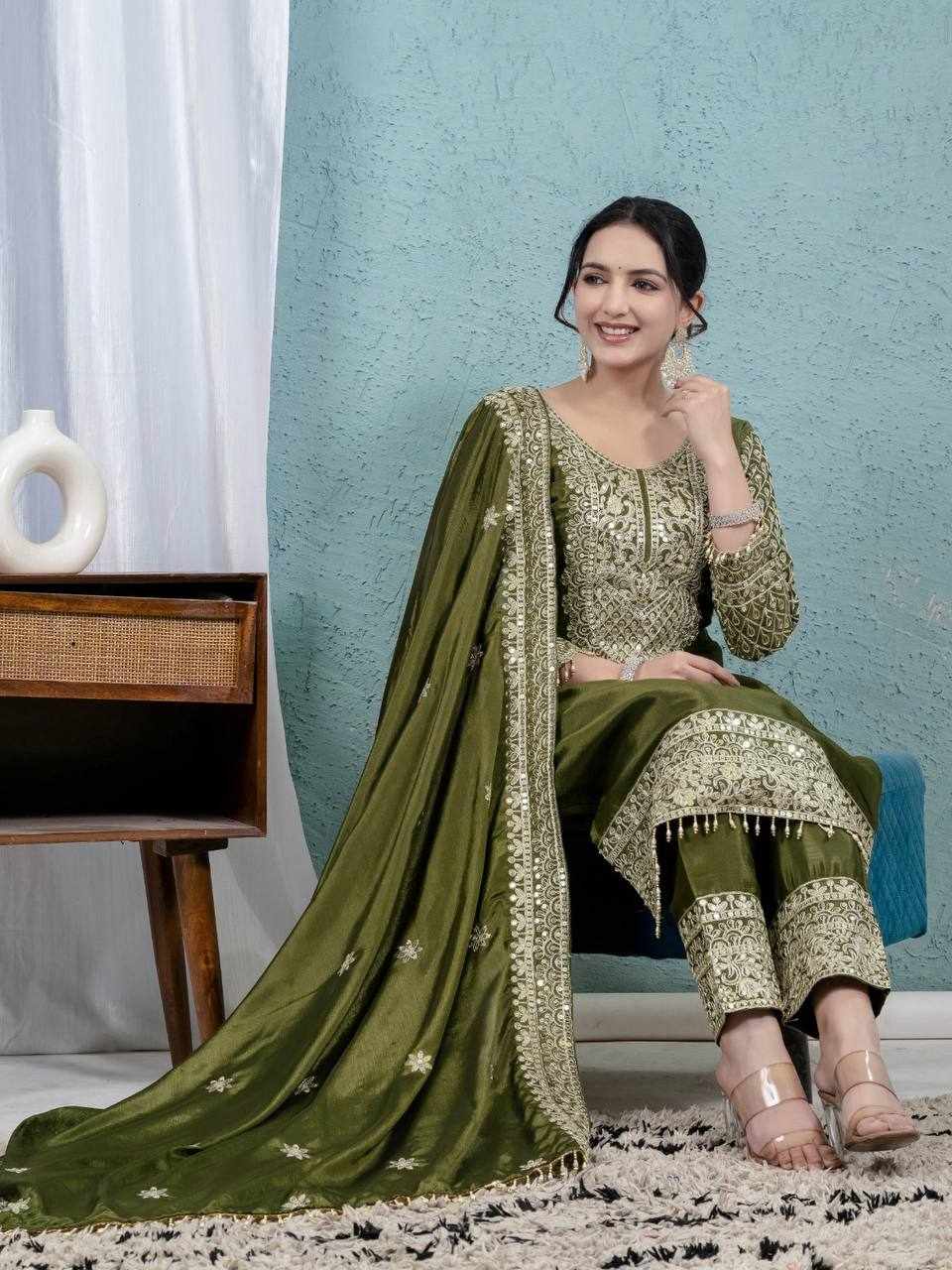 Dupatta Fabric : Pure Heavy Chinnon Silk with Embroidery Coding Sequence Work