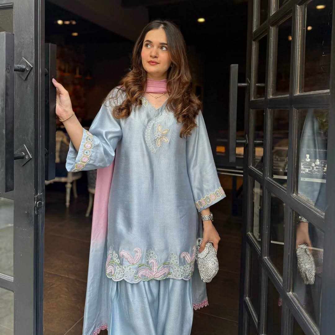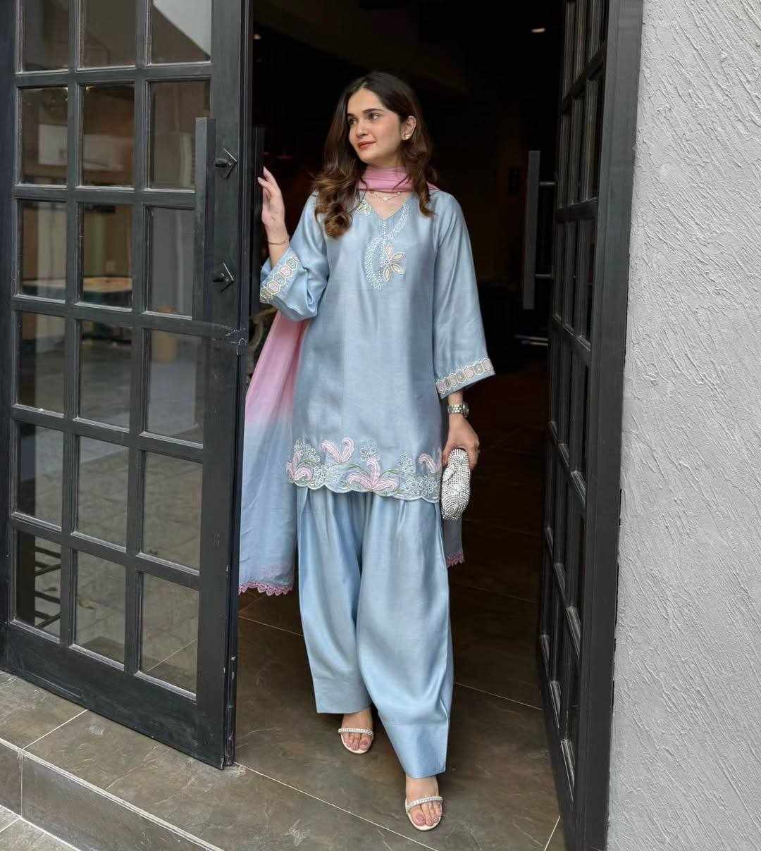 Fabric : Heavy Malay Satin Silk with Embroidery Sequence Work and Fancy Latkan Sleeves